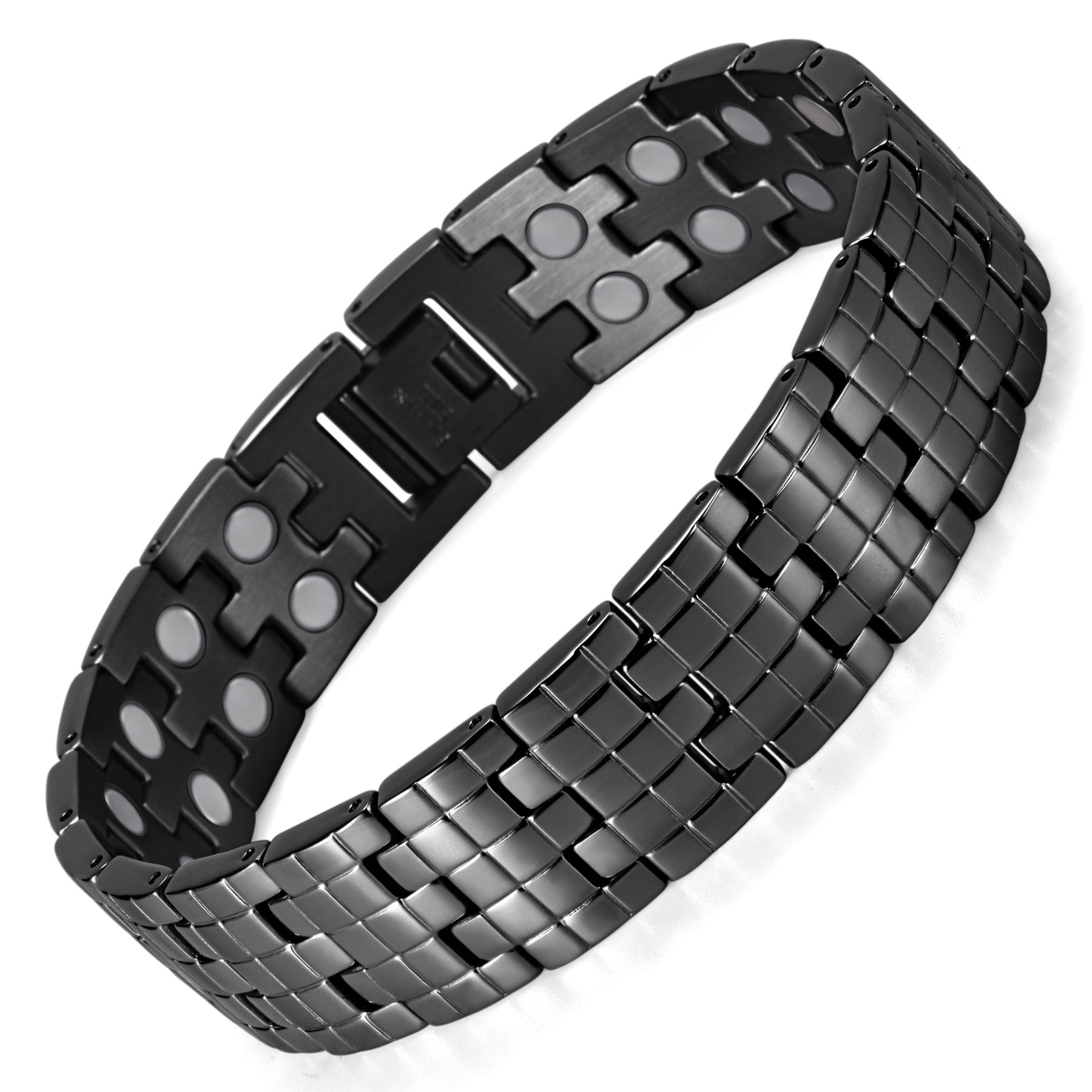 Kraften i en magnet uttrycks i Gauss. Armbandet är utrustat med magneter med en styrka på 3500 Gauss. 3500 Gauss anses vara ett kraftfullt, effektivt och säkert värde.