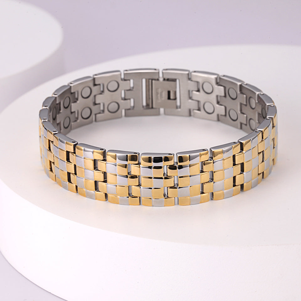 Det lyxiga MAGNETOX-armbandet 'AERON' stimulerar kroppens självläkande kapacitet, och är även funktionell och modern!